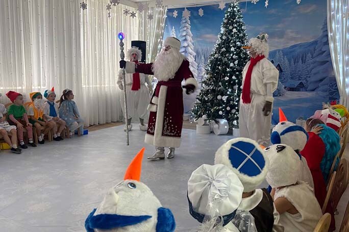 Эта история вся пронизана волшебством и чудесными превращениями. Поэтому представление получилось добрым и загадочным. Все ребята с удовольствием проявляли свои таланты: как настоящие артисты выступали в роли сказочных персонажей, танцевали, рассказывали стихи, пели песни. И, конечно, все ждали главного героя праздника – Деда Мороза, который под звуки фанфар появился в зале. И у ребят, и у взрослых его приход вызвал море радости и всплеск эмоций. А в конце праздника все участники получили новогодние подарки.🎁