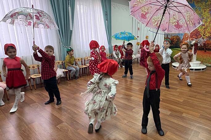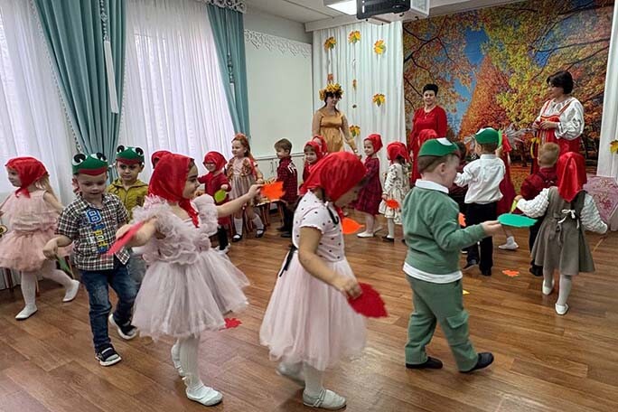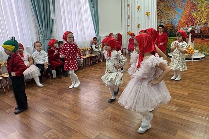 Детки с удовольствием танцевали и играли, наполняя зал смехом и улыбками.