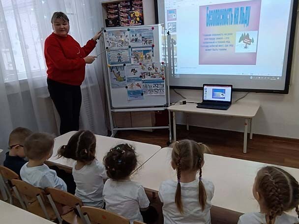 С ребятами была проведена беседа, о том, почему зимой❄️ опасно выходить на ледяные поверхности водоемов. Были обсуждены такие вопросы, как: какая толщина льда🧊 считается безопасной, какие места на льду наиболее опасны, что делать, если кто-то провалился под лед.