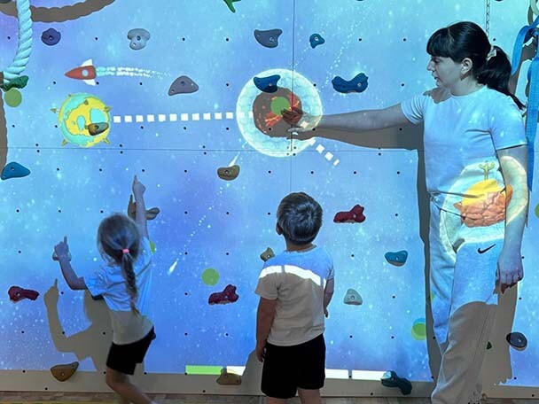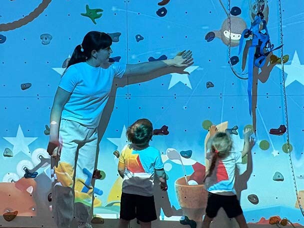 Дарья Юрьевна Антонюк использует скалодром для улучшения двигательной активности ребят.