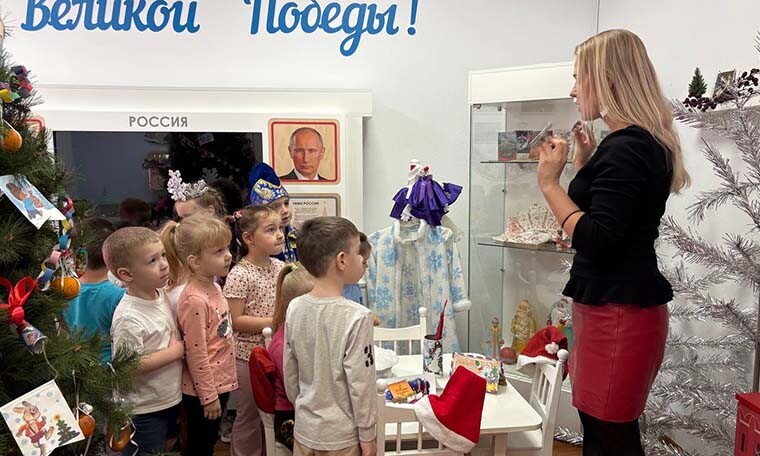 Поддерживая идею сохранения традиций, музей представляет коллекцию редких и красивых советских ёлочных украшений, изделий ручной работы. Ребята с интересом рассматривали фотохронику празднования Нового года в военное время. Гордостью музея является пушистая красавица, украшенная конфетами, ароматными мандаринами, бубликами и гирляндой ручной работы.