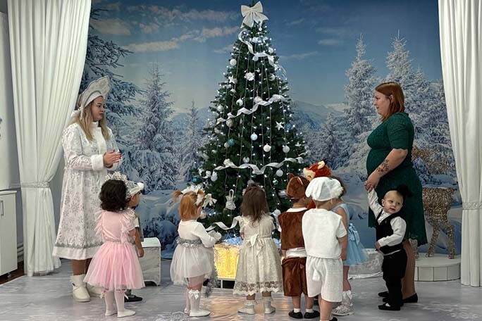 В преддверии праздника в группе «Капитошки» прошёл самый первый новогодний утренник, который подарил всем волшебное зимнее настроение. Малыши пришли нарядные, все закружились в новогоднем хороводе. Ребята веселились у нарядной ёлочки с красавицей Снегурочкой, серым зайкой и лисицей-сестрицей. Дети со Снегурочкой поиграли в волшебную игру «Ёлочка свети!» и помогли Снегурочке зажечь огоньки на новогодней, праздничной елочке.