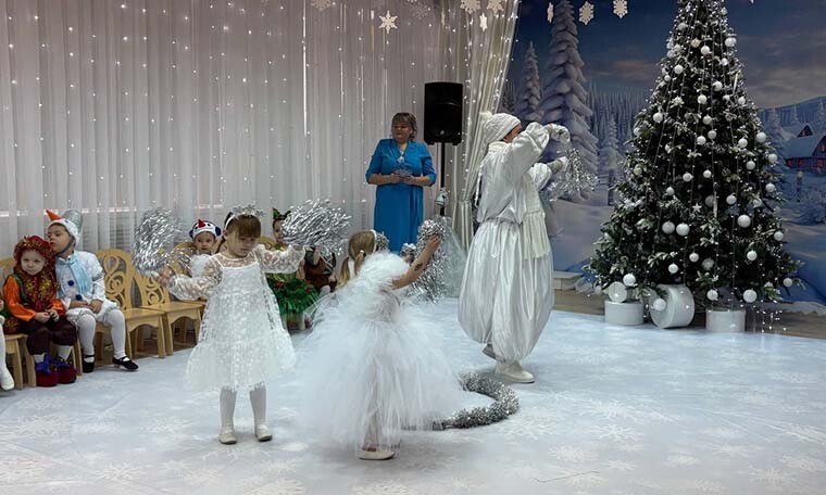 Ребята пришли нарядные, превратившись в веселых мишек, зайчат, красивых снежинок, сказочных гномов и великолепных снеговиков. А открыли праздник, наши красавицы елочки. Ребята погрузились в мир чудес и приключений, сюрпризов. Дети танцевали, пели песни, читали стихи, водили хороводы. Ребята получили массу положительных эмоций и долгожданные подарки из рук Деда Мороза.
