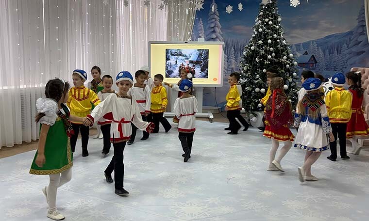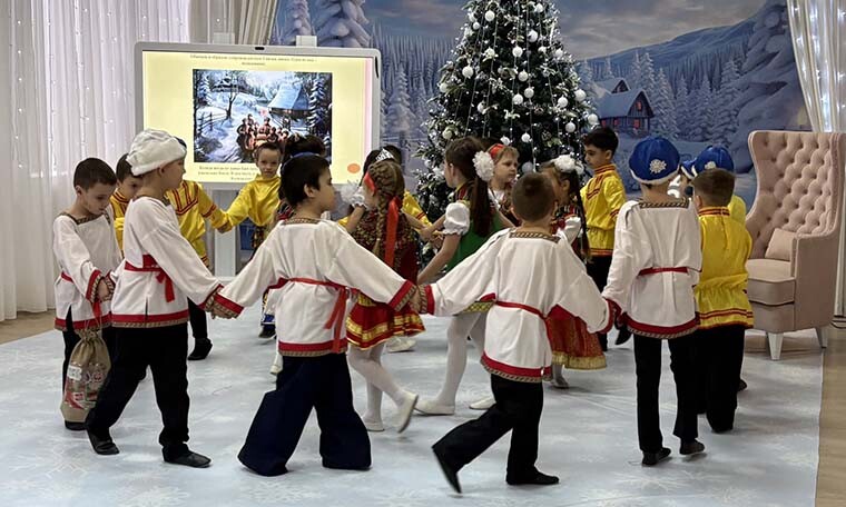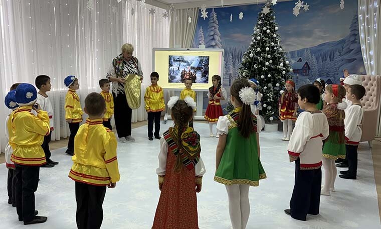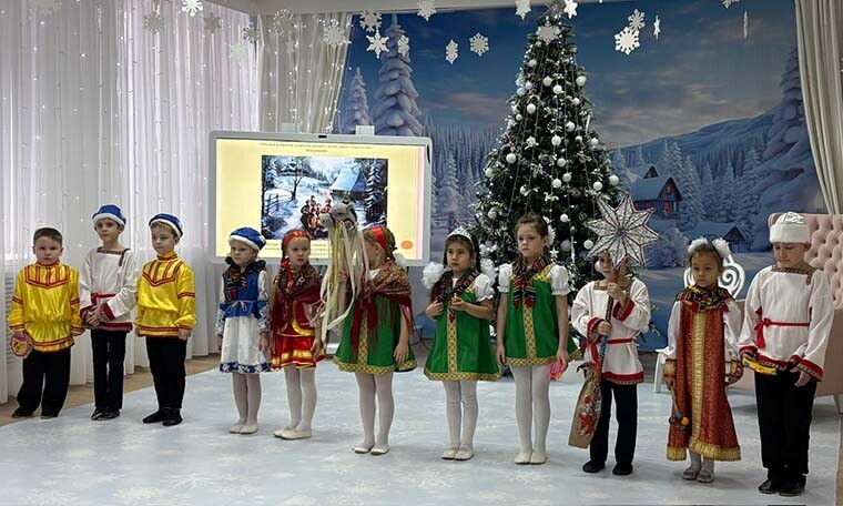 Сегодня наши ребята побывали на святочных посиделках, на которых познакомились с обрядом колядования, услышали легенду о елочке и приняли участие в народных играх и хороводах.