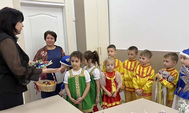 Праздник завершился настоящим колядованием, где ребята - колядовщики из групп "Солнышко" и "Кораблик" поздравили всех со Старым новым годом и под звонкие голоса раздавались яркие колядки.